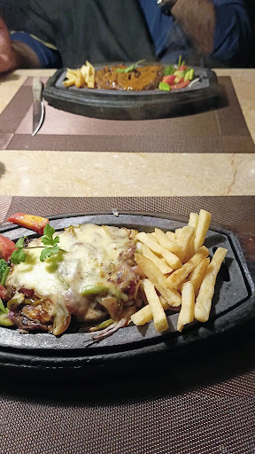 For the main course, we ordered three well-done beef steaks: Jackson Steak, Twin Steak, and American Fire Steak. While the steaks were flavorful and well-cooked, the portion sizes have noticeably decreased compared to our previous visits. Additionally, the presentation was disappointing. The platters were overcrowded with sides like fries and vegetables, which were burnt due to being served on a sizzling-hot tray. Serving the sides separately would have been a much better choice.