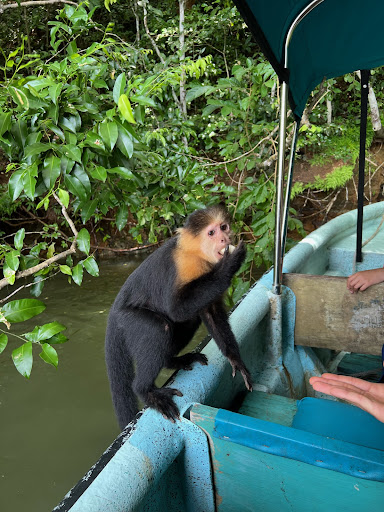 The tour was just my dad and I, and it was my favorite thing we did in Panama. The monkey (several species) will approach the boat and eat the banana's (provided by the guides) right out of your hand.