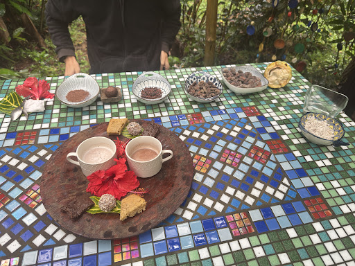 Once on the tour, I was blown away. Our guide, the middle son, was so knowledgeable and passionate, weaving together fascinating lessons on permaculture, organic farming, and cacao production. Everywhere you look, something new is growing — cacao pods, tropical fruits, herbs, etc. He would just pull something off of a tree or bush and give it to us to eat!!