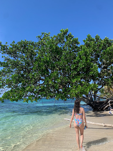 Chuen picked us up at our place in the morning, and then we went to dolphin bay, where we learned about the bottle nose dolphins and saw a lot of them! At the end of dolphin bay we saw a family of 7 dolphins with baby dolphins, and Chuen made some waves for them with his boat and they were all, including the babies, jumping in the waves. Then we went and Chuen found some sloths and talked about them. Then we went and ordered some lunch and went to Cayo Coral to snorkel, which was fun! They provided snorkels and masks, but no flippers because it damages the coral. Then we had a really good lunch -- everything was between $12-16 plus drinks for $2-7 and you paid in cash. Then we went to Zapatilla island which was magical! It felt like we were on a deserted island that was paradise.