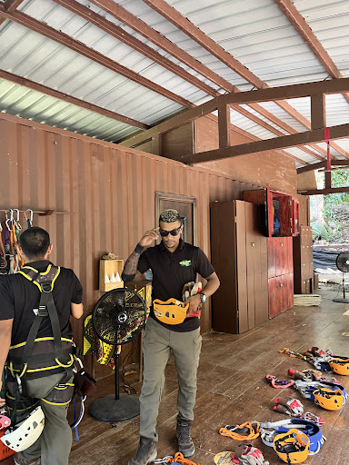 Cómo estaba con mis dos hijos, y para no causarles un desplante a ellos decidí continuar con el tour. En la primera línea le informé a Alexis que no había podido escuchar las instrucciones por lo que me dijo que no hacía falta frenar y que solo me agarrara de la línea y el harness. Al llegar al final estaba el joven Marcos con mis dos hijos esperando y se percató de que Alexis me estaba moviendo el cable para ir más rápido. Al llegar a la plataforma donde estaba Marcos con mis 2 hijos me tocó levantar las piernas y golpearme contra un árbol.