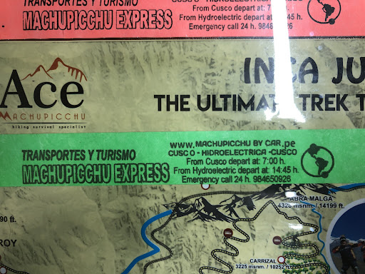 Read moreNe passez pas par eux! Quand vous réservez votre transport au Machu Picchu, demandez à ne pas passer par Machu Picchu express! Aucune considération pour nous, les CLIENTS, nous qui les faisons vivre! Nous traitent comme du bétail. Vous disent d'arriver à 6h mais ne partent qu'à 8h. Au retour, vous pressent d'être au point de rdv à 14h mais ne partent qu'à 15h30. Ensuite, disent dans les commentaires que ce n'est pas la même société. Je n'y crois pas. Dans le doute, ne la prenez pas! 14h de route avec eux furent vraiment horrible. Et les vans sont dans des états lamentables! On a été obligé de s'arrêter plusieurs fois pour regonfler les pneux! Le chauffeur mourrait de sommeil car ils roulent au moins 12h par jour avec 20min de pause... Nous sommes arrivés avec plus de 2h de retard (23h à Cusco).