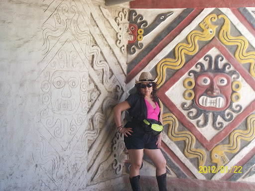 I spent some really interesting hours in the archaeological complex El Brujo. It covers thousands of years of uninterrupted human occupation. The complex is situated about 70 km north of Trujillo. It is about a 45 minutes drive from Trujillo and absolutely worth the trip. The latest excavations carried out at the pyramid called Huaca Cao have revealed a ceremonial site that is 1800 years old. It was built with the intention to bury a royal person. They found a mummified young female person. The condition of the mummy was so good that the could see tattooes on different parts of her body. We could see the body in the museum. She was called: La dama de Cao, (The Lady of Cao) and we could see a lot of artefacts and jewellery. After seeing the museum, we walked around in the huaca, and it was really interesting. This was the Moche culture, and I recommend reading about the Moche before you visit El Brujo. And it is also interesting to make a stop in the nearby village Magdalena de Cao. Lots of nice paintings on the walls...