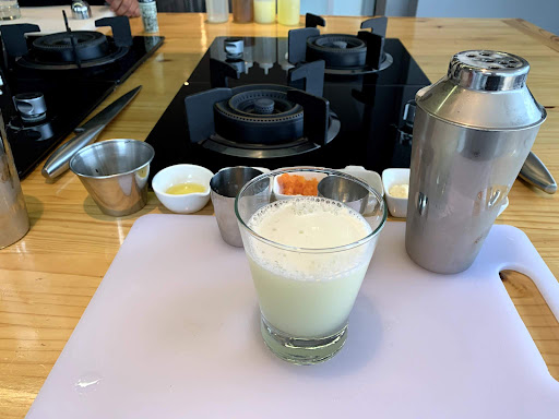 we learned how to make the drink, the drink if you ever in Peru. Followed by prepared one cold and cooked another one.