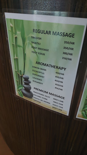 Two of us went on a Wednesday afternoon and had the whole room (and place) to ourselves. We got the Shiatsu body massage and foot massage package (1.5h) for 450php each. Our masseuse were Marie and Michelle - they were professional, courteous, and friendly.