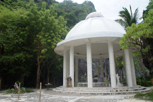 Arriving at Matinloc, our boat docked on a little platform, with a narrow runway over the water, where we were greeted by a sculpture of Jesus Christ in a small cave and a concrete gazebo, a reminder that this is also a religious, or at least spiritual, place.