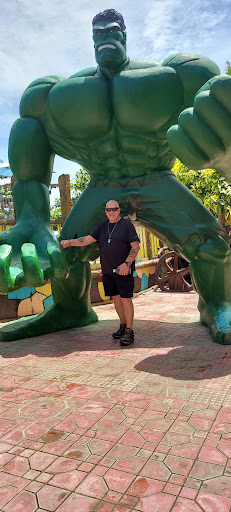 The entrance with all the cartoon statues are nice , pool looks nice, but trash all over the ground. Needs much improvement. Staff could be more friendly. Guards are good, but need a uniform polo shirt with security badge, and dress in nice tactical shorts. So people can see them for help. Parking lot needs the building materials picked up and nails not to get...