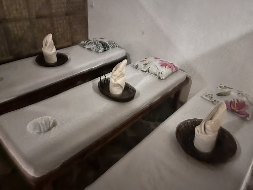 Our first night here was not so great, we requested for a relaxing Swedish massage but it was like getting a massage in a zoo. The customers who finished and new ones that came in were talking super loud, laughing, kids screaming playing sounds on their phone and the sounds of the rocks as they walked pass. Absolutely disrespectful by the customers. No common decency. We had to ask our therapist to tell them quiet but that did not work. We absolutely hated it as it was not relaxing at all but it was just unfortunate because the massage was amazing. But someone should’ve told them to be quiet and have some respect as there’s literally signs.