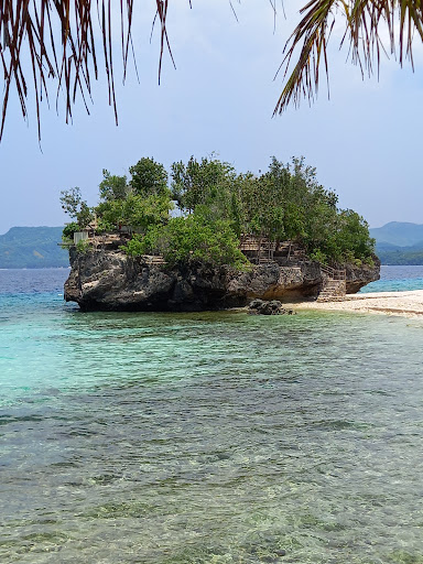 Read moreBefore reaching the place you'll pass through Siquijors's counterpart of manmade forest in Bohol, but in lesser scale, more like a cement road lined with mahogany trees. At the end of the road is Salagdoong beach, P50 entrance fees, P20 parking fee, dotted with cement picnic huts (for rental) and some accommodations if you wanted to stay overnight along its short coast. This is a good area to snorkel as the blue green water is relatively deep. The sand is off white, gravelly in some areas, intertidal zone is corally as well; the comfort room is in a state of disrepair, a large function hall was closed, there are some booths selling coffee, dirty ice cream, and refreshments. Highlight would be the stand alone islet, with 3-4 gazebos on top and some diving platforms of varying height. Nice place to swim, dive, snorkel, and while your time away prior to your next...