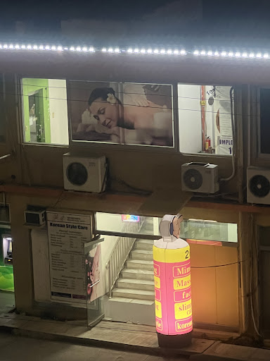 Inside, the front desk was crammed with beauty product displays and printed menus for every service imaginable. It felt more like a sales booth than a wellness space—just cluttered and visually overwhelming.