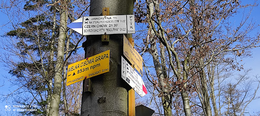 Wielka Cisowa Grapa 853 m.n.p.m. przyjemna wycieczka na ten szczyt rozpoczęła się w Porąbce. Żółtym szlakiem na Kiczerę następnie do Przełęczy Isepnickiej później czerwonym szlakiem do Przełęczy Przysłop , gdzie widnieje tabliczka z nazwą szytu- od tego miejsca jeszcze 10 min.i jesteśmy na miejscu. Wyprawa tam i z powrotem to ponad 5 h. Ale warto bo Wielka Cisowa Grapa zalicza się do Korony...