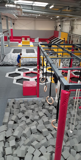 Fantastyczne miejsce, jak chcesz się fizycznie wyżyć, zmęczyć, poszaleć, poeksperymentować z własną grawitacją, sobre miejsce dla dziecka, do przełamywania barier i żeby nabrało trochę odwagi. Tylko ostrożnie, bo o kontuzje nie trudno, a i zakwasy na drugi dzień też się zdarzają, nad niektórymi atrakcjami czuwają instruktorzy, są też i oznaczenia dokładne i wyraźne. Jest tyle do wyboru różnych trampolin, basenów z gąbkami, skoczni, lin i ścianek, że każdy coś znajdzie dla siebie. Szatnie, jak i obiekt czysty, po wszystkim, polecam prysznic. Można na górze w kawiarni zjeść i napić. Jedyny i uważam gruby minus, o czym albo nie doczytałem, albo brakuje o tym informacji oprócz na recepcji, albo też obsługa to źle tłumaczy, a pytałem się 3 razy, bo chciałem skorzystać i liczyłem to wtedy (Sobota 14.07), to dodatkowa opłata za wstęp na pole do strzelania się bronią na amunicję piankową NERF. Bo w takim wypadku jak chcesz wejść, to musisz zapłacić za, wstęp na trampoliny jak do całego parku, dodatkowo wstęp na pole do strzelania (czas na obie atrakcje idzie równocześnie i nie ma możliwości zakupu tylko na pole do strzelanki NERF), kaucja za broń i za samo wypożyczenie broni. Czyli podsumowując za 2 godziny na strzelaniu nie korzystając z trampolin, trzeba mieć przygotowane za 2 osoby prawie 280 zł (120 wstęp ogólny dla 2 osób, 14 za 2 pary skarpetek, 40 zł kaucja za 2 bronie, same bronie też po 20 zł sztuka i wstęp po 28 zł od głowyi nie pamiętam, czy nie przypadkiem za godzinę, czyli jeszcze razy 2, jakby tak faktycznie było to wtedy nie, 280 a 340 za 2 godziny (w tym kaucja zwrotna 40 zł)). Także, jak ktoś chce typowo, na tą atrakcję, to radzę się zastanowić, żeby nie było rozczarowania... P.S. Na stronie brak informacji o jakiejkolwiek dopłacie za strefę NERF, niestety nie mogę dodać zdjęcia z strony, z powodu polityki google. Pozdrawiam i może jakaś...