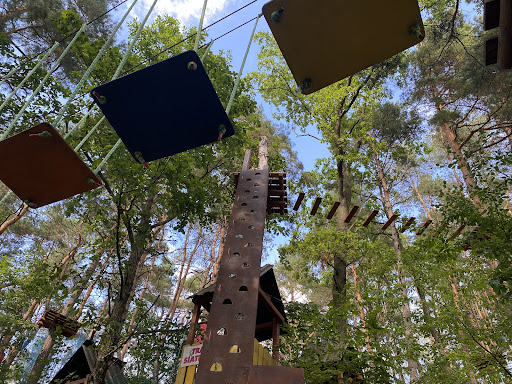 Bardzo miła obsługa, miejsce zdecydowanie godne polecenia. Na zdecydowany plus to że park znajduje się w lesie na górce (widoki i ochrona przed sloncem). Trasa siateczkowa dla najmłodszych na cały dzień jeden bilet. 3 latkowi się podobało, po obiedzie chciał jeszcze wrócić. Niespełna 2 latka przeszła z drobnym wsparciem rodzica, ale dla takich małych dzieci nie polecam (zresztą trasa jest od 3 lat). Trasa zielona dla mnie (malo ruchu na co dzien) dość rekreacyjna (zdjęcia z zielonej), trasa czerwona była wymagająca. Wózkiem się nie wjedzie, pod wejściem...