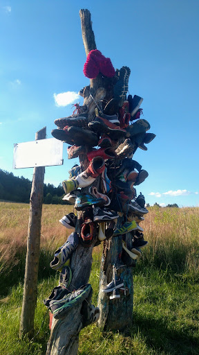 Read moreKrótkie, niewymagające podejście od strony miejscowości Komarno. Po drodze na polanie znajduje się cudaczna instalacja artystyczna z obuwia. Sam szczyt jest zalesiony. Warto przejść kawałek dalej do punktu widokowego gdzie ukazuje się całkiem ładna panorama. Metalowa skrzynka w której znajduje się pieczątka jest zdezelowana. A sama potwierdzająca zdobycie szczytu pieczątka jest w dwóch częściach. Tusz jest rozlany, pobrudzenie rąk zatem gwarantowane. Również co budzi niesmak to fakt, iż wkoło leżą porozrzucane chusteczki którymi turyści wycierali ręce z tegoż tuszu. Miast zabrać śmieci ze sobą niektórzy "traperzy" postanowili "upiększyć" nimi okolicę. Doprawdy widok ów smutkiem napawa. Gorący apel do zarządcy rzeczonej skrzynki o naprawę jej oraz...