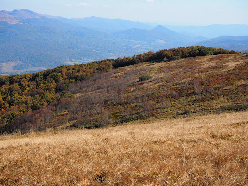Jest to chyba rzadziej odwiedzane miejsce w Bieszczadach. Jednak warto przejść tę trasę i napawać się pięknymi widokami, wzgórzami mieniącymi się kolorami. To jest uczta dla oczu i ducha. Opiszę ją - może komuś sie przyda. Zaczęliśmy wędrówkę Niebieskim Szlakiem przed Ustrzykami. Podejście przez las jest strome i poza wspinaczką nie oferuje żadnych atrakcji. Nawet misia nie widać. Po przekroczeniu granicy lasu, tuż przed szczytem, można podziwiać podejście. Mimo że wydaje się trudno dostępne, za chwilę jesteśmy na Rawce Górnej. Słońce ładnie oświetla okolicę i jest na co popatrzeć. Po krótkiej przerwie idziemy na Małą Rawkę. Tam odsłaniają się nowe widoki. Jednak zaskakuje nas zejście do Wetliny. Zwykle zaczyna się las i trzeba zapomnieć o widokach na okoliczne szczyty. Tu jednak była duża wieś i na wzgórzach były pastwiska, a nawet siedliska bo spotykamy drzewa owocowe. Dzięki temu mamy las na przemian z rozległymi obszarami zarosłymi obecnie krzewami jagód i wysokimi trawami. Stoki są południowo-zachodnie, a słońce dziś nie odpoczywa mimo niedzieli więc widoki są niezwykłe. Każda polana mieni się barwami jesieni i nie sposób zatrzymać się choćby na chwilę aby podziwiać kolory. Trasa ok. 14 km. i 6 godzin. Kliknij łapkę w górę jeśli spodobał Ci...