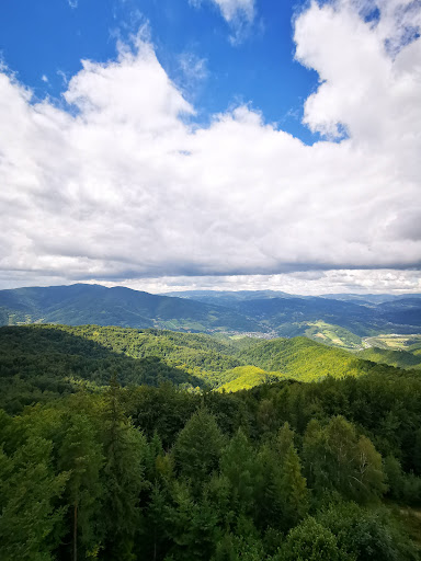 Read moreJedna z czterech wież widokowych w gminie Ochotnica Dolna, oddana do użytku w 2016 roku, stanowiąca część atrakcji o nazwie "Zdobądź 4 wieże", polegającej na zebraniu pieczątek z w/w wież. Przy dobrej pogodzie z wieży rozciąga się wspaniała panorama 360 stopni na okoliczne pasma górskie: Pieniny, Gorce, Beskid Sądecki i Tatry. Obok wieży ławeczki i miejsce na ognisko. Na najwyższej platformie wieży, na każdym z czterech boków wieży, są plansze z panoramami gór i podpisanymi szczytami, więc wiadomo, na co się patrzy :) Dodatkowo są zdjęcia okolicznej flory i fauny z opisami oraz pamiątkowe zdjęcia z wypraw Karola Wojtyły i ks. Blachnickiego na Błyszcz. Na wieżę można dojść kilkoma szlakami, najkrócej jest podjechać z miejscowości Brzyna drogą leśną (częściowo szutrową, częściowo betonową) wzdłuż rzeki Brzynki do parkingu leśnego, a stamtąd 20 minut piechotą, dość stromym podejściem dochodzi się do wieży. Szlak nie jest oznakowany, ale pokazuje go np. aplikacja mapy.cz, wg...