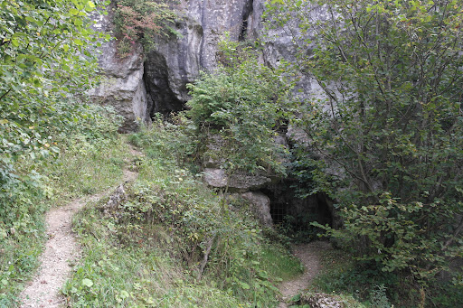 Jaskinia tuż obok szlaku. Wejścia do środka zakratowane. Nieupoważnionym wstęp wzbroniony. Upoważnieni mają wewnątrz magazynek. Skały na szczcie zarosły roślinnością i panorama mocno ograniczona. Pod jaskinią wiata turystyczna. Kosze pełne. Własne śmieci...