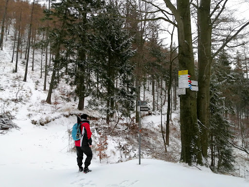 Fajny szlak na wieżę. Przy wieży jednak cały czar pryska. Wstyd dla turystów. Pomimo wyraźnego hasła o zabranie ze sobą śmieci obok wiaty do odpoczynku...