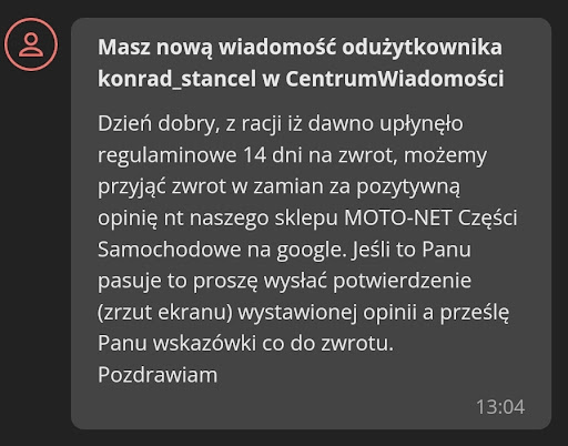 Jestem bardzo niezadowolony z doświadczenia zakupowego w firmie "sklepmotonet.eu" W rzeczywistości, moje doświadczenie było tak negatywne, że muszę się tym podzielić.