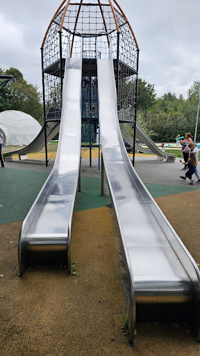 Brak parkingu ale na stronie jest info żeby korzystać z parkingu M1. Jest ok nie jest daleko. Pomocna animatorka poradziła żeby zacząć od tylu bo tam jest odsłonięte miejsce a potem iść w stronę wejścia gdzie jest troche cienia. Upał był dzisiaj i chyba to była bardzo dobra rada. Można pomyśleć o jakimś zadaszeniu lub drzewach. Doświadczenia fajne i dla dzieci i dla dorosłych. W dzisiejszym upale marzyłam o doświadczeniach z wodą-szkoda że nie ma. Huśtawek mogłoby być więcej-to zawsze przyciąga na dłuższą chwilę więc nawet dzisiaj przy małej ilości dzieci musiałyśmy czekać. Nie potrzebnie dwie dodatkowo płatne atracje. Jak już kupuje się bilet to wszystko powinno być w cenie. Taka dopłata powoduje pewien niesmak. Kilka parków które odwiedzaliśmy zrezygnowały z dodatkowych opłat i chyba im się to opłaca-może tu też ktoś przeliczy zyski i wprowadzi zmiany. Łazienki czyściutkie wyszła wycieczka i pani już wycierała podłogę bo dzieci pochlapały się wodą. Można coś zjeść na miejscu i kupić lody. Przy takim dużym terenie postawiłabym ławy i zaoferowała np zupy dla dzieciaków. Generalnie fajne miejsce ale za drugim razem eksperymenty nie będą już...