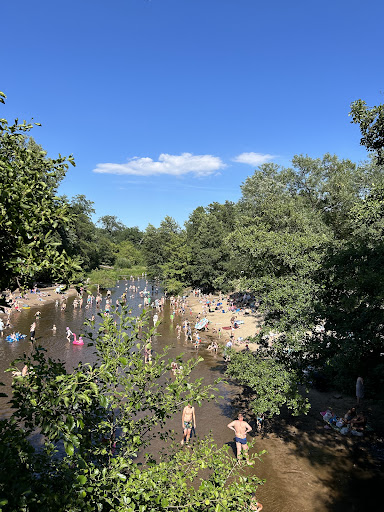 Read moreNie są to Malediwy, a przynajmniej tak zakładam bo nigdy nie byłem, ale miejsce ma sporo plusów: jest czysta i bardzo płytka woda, dla małych dzieci ciężko o bezpieczniejsze miejsce bez ratowników. Po stronie otwockiej bar, po stronie Józefowskiej miejsca na grilla,plac zabaw i obok pszoku toaleta publiczna(w trakcie weekendu różnie z czystością).Obok parkingu dwie lodziarnie i chyba kebab Bywa ciężko z miejscami do parkowania ale zawsze się gdzieś znajdzie. Po stronie Józefowskiej, jakieś 200 metrów do małego centrum handlowego. Szczególnie w Pepco polecam zakup dmuchancow dla dzieci. Obok mostku starszy Pan od lat sprzedaje takie rzeczy ale ma dość...