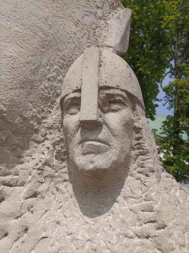 Bolesław III the Wrymouthed Monument in Płock shows prince Bolesław III Wrymouth on horseback, surrounded by a group of warriors walking with banners. The monument is made of light sandstone. Is over 5 meters tall and weighs about 21 tons.