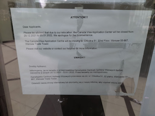Read moreSHAME! SHAME! SHAME! to Canada Visa Center in Warsaw! Today my sister came from Krakow to Warsaw to collect her passport with Canadian visa. She was informed that from December 5, 2022 rules were changed and she needs to book an appointment for passport collection. She tried to explain her situation - that she didn't know this new rule; that she took day off to come here. So in the end my sister was offered by VFS Global employee to give a bribe 200 zl. for a fake appointment for visa collection letter for today. Unfortunately, today many Ukrainians were forced to give their last money to "enterprising VFS employees" to receive Canadian visa to start new life in country where such disgusting things could never happened! If VFS Global changed the rules for visa collection and it is not ALLOWED to collect a passport without an appointment WHY YOU ASK PEOPLE FOR MONEY? You ask people, who are trying to escape from war, cold winter, destroyed houses. This is totally...