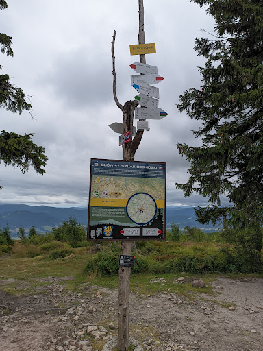 Read moreSzczyt - 1220 mnpm. W dalszym ciągu widać tam skutki wichury. Przygodę zaczęliśmy od strony białej Wisełki z parkingu z miłym parkingowym i do tego tanim bo tylko za 6 zł. Droga niebieskim szlakiem. Na początku prosta po asfalcie wzdłuż rzeki. Po drodze skały grzybowe, piękne formacje skalne. Potem Kaskady Rodła, dość spora ilość małych wodospadów. Mijamy również kilka domków. W jednym można było się zatrzymać i coś przekąsić. Kiełbasa z ogniska, frytki, jagodzianki czy chleb ze smalcem. W pewnym momencie droga asfaltowa zmienia się w drogę kamienistą i coraz bardziej stromą. Idzie się lasem po kamieniach, po których spływa woda. Idąc z małymi dziećmi lepiej trzymać je za ręce. Dochodząc do szczytu droga staje się bardziej kręta i stroma, tuż przed samym szczytem jest już łagodniejsze podejście, a na sam koniec pozostaje mała wspinaczka po skalnych schodach. Szczyt płaski, pełny jagód i połamanych drzew. Na szczycie wieża widokowa. Chwila przerwy i w drogę do schroniska czerwonym szlakiem. Droga w dół polaną ścieżką trochę przez błoto w miejscach położnych kładek z bali, następnie po kamiennej ścieżce, niezbyt łatwej do pokonania, gdyż jest na niej sporo ruchomych kamieni. Dochodzi się do schroniska gdzie można odpocząć i zjeść jakiś obiad. Następnie dalej czerwonym szlakiem w dół, aż do kolejnego szlaku - czarnego. Czarny szlak to już druga asfaltowa o małym pochyleniu wzdłuż Wisełki czarnej przez las. Droga prowadząca, aż do jeziora. Po drodze nie ma żadnej cywilizacji i są problemy z zasięgiem. Następnie spod jeziora to już okolo 30 minut marszu do parkingu od strony białej Wisełki. Trzeba iść ulicą i uważać na jeżdżące samochody. Całą przygodę z dwójką dzieci w tym z jednym niespełna czterolatkiem zaczęliśmy okolo 10 rano, a skończyliśmy około 19. Trasa ponad 18 kilometrów po różnych nawierzchniach. Dość wyczerpująca, ale...