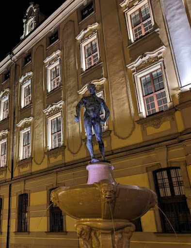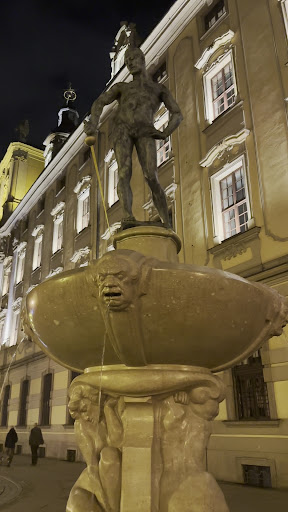 Read moreЧудесный памятник в прекрасном окружении. «Фехтовальщик» был открыт в 1904г. когда Вроцлав был частью Германии и назывался Бреслау. О памятнике ходит байка что скульптора, Хуго Ледерера, вдохновила на его создание история из его жизни. Когда он приехал в Бреслау студентом учиться у известного скульптора его встретила компания гуляк и познакомившись повели его в бар где покутили на его деньги. После они пошли играть в карты, где молодой скульптор проиграл все свои деньги, а заодно и одежду, пытаясь отыграться. Осталась у него только шпага. Так что памятник стоит в назидание студентам - не пить и не играть в азартные игры. Шпагу...