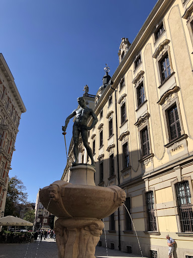 Bei den wasserspeienden Figuren soll es sich um Porträts Breslauer Professoren handeln.