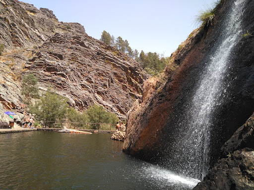 Fonte do Pego, una pequeña piscina natural con un agua excepcional y relajante entre peñas, de ahí que muchos aficionados a la escalada se den cita en esta localidad portuguesa, con un entorno que nos hace olvidarnos del tiempo y disfrutar de lo lindo. Encontraremos esta fuente natural después de hacer un pequeño recorrido a pie. No os dejéis liar por el GPS, ya que os vuelve un poco locos al llegar a la plaza del Tanque en la parte superior del pueblo y nos empieza a dar vueltas de nuevo. El acceso a la piscina se puede hacer por la carretera que llegamos y en mitad de la cuesta girar a la derecha según subimos o a la izquierda si bajamos desde la plaza del Tanque. Penha Garcia, en la ruta del Tajo Internacional a tan sólo unos kilómetros de Extremadura y en las estribaciones de la Sierra de Malcata, os sorprenderá sin duda, porque nadie se espera que algo tan espectacular, aparezca como de la nada. La piscina a pesar de no ser muy grande acoge a muchos visitantes deseosos de un buen refrigerante sobre todo, en época estival y se agradece esa espectacular catarata que nos invita al baño. Por reseñar algún inconveniente para los amantes de los animales, no esta permitida la entrada y cuenta con poco espacio para acomodarse, lógicamente. Tampoco está dotada de establecimientos de restauración. Por lo demás, una auténtica maravilla y muy...