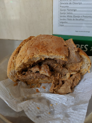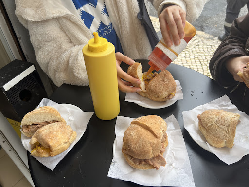 Read moreVery friendly owners and awesome bifanas! The place is small and standing tables only. The male owner is so vivacious and friendly. He could tell we were foreigners and assumed (correctly) that we wanted 2 bifanas. He doesn't speak English but we communicated well through pointing. His wife is also friendly and sweet. I also got a coffee here which was good. They don't have milk so it's only espresso but it tasted good. The bifanas we're great, with soft yet crunchy bread, flavorful meat, and bottles of mustard. Total for 2 bifanas, a shrimp croquette and a coffee was €7....