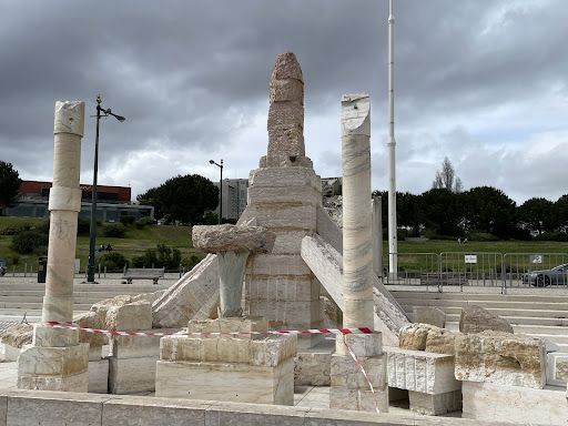 I found the roughly arranged configuration of wall, stone and pillar fragments interesting. They resemble a ruinous pedestal or column statue, perhaps representing the toppling of the ruling class regime ousted during the military coup that took place as part of the Carnation Revolution.