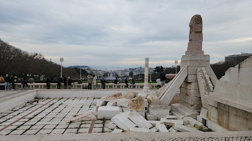 This monument commemorates a very important day in Portuguese history, the fall of the dictatorship. It features what seems to be pieces of marble staged as rubble. The setting could not have been more perfect, as it sits on the Observation Deck at the Parque Eduardo VII. It does need some tender, loving care, as there is trash left behind, and of course, the water is missing, which can certainly be due to fact that I went during the wintertime, but it just doesn't look the same.