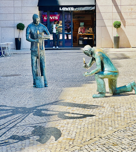 Read moreThis is the “Paver’s Monument” and is a tribute to the workers who build and pave the streets of Lisbon, Portugal. This is located on Rua de São Tomé in Lisbon’s Alfama district. The pattern the workers are looking at/working on is the coat of...