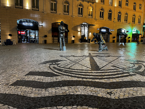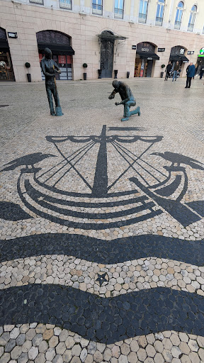 The monument honors the calceteiros—the skilled craftsmen who create Lisbon’s famous calçada portuguesa (Portuguese cobblestone pavements). These artisans have shaped the city's walkways into works of art for generations. The bronze sculpture, created by Sérgio Stichini, depicts a stone mason and his assistant at work. Beneath them, the pavement features the symbol of Lisbon—the Ship of Saint Vincent—crafted in traditional stone mosaic. Originally installed on Rua da Vitória in 2006, the monument was relocated to its current...