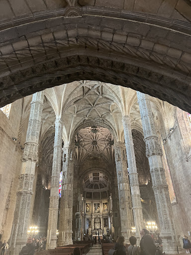 War nur im Kloster und nicht in der Kirche (schauen doch sowieso alle gleich schön aus...) Eine Reihe schatten spendender Bäume wäre schön, alles so zugepflastert :/ zum Glück war es an dem Tag nicht zu heiß und hat auch nicht geregnet, sonst wären wir verbrannt oder nass. Rauf und runter laufen Verkäufer für Wasser (1€ für 0,5l - ist ok aber wir hatten was dabei) und Schmuck. Vielleicht verkaufen die bei regen auch Schirme und Ponchos... Architektur ist schön aber Fotos ohne andere Menschen drauf so gut wie unmöglich und muss man hinnehmen. Sehr viele schönes Details in Stein gehauen. Gefühlt sah jede Säule einzigartig aus. Aber man kann sich drinnen länger Zeit nehmen und wird nicht...