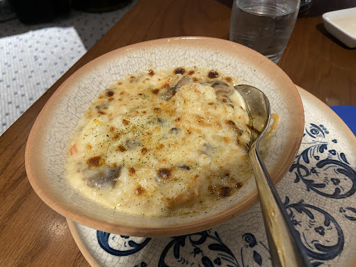 As for the food, I was a bit dissatisfied with my order. I ordered a lobster and the waiter told me about the two styles that they cook with; one is without the shell with mushroom cream sauce and the other is with the shell and a sauce. I got the one without the shell, thinking that they’d serve it like any other place, with the tail and claw meat removed and served with a sauce, however I received something resembling lobster Mac and cheese.