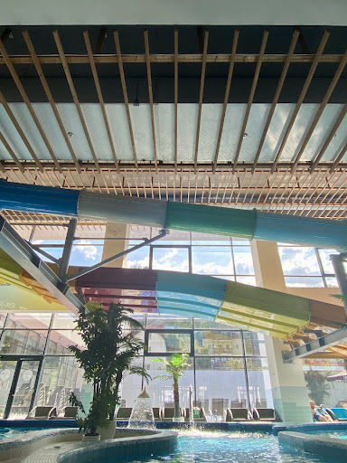 Read moreThe main pool gets very busy during weekends. At the first floor there are the slides for children- many use them but the majority of parents keep the children with them in the main pool. There is another adult pool at the first floor, for swimming but that was only accessible during weekends. The bubbles sun beds and chairs inside the main pool are not functioning properly- only 3-4 of the chairs. The windows were quite dirty, not properly washed. The wellness area is at the second floor accessible with a bracelet- the saunas are nice; the wellness showers were not working. There are heated stone chairs around the second floor where you can relax. There are sun beds outside on the terrace on the first floor and at the second floor some chairs to sit and relax. There is no bar inside the wellness area, only a bistro at the first floor but you are not allowed to carry anything glass or cans inside the pool area or wellness one. Overall we had a nice experience mostly because the saunas which are only open during weekends but the fact that they didn’t had all facilities properly working...