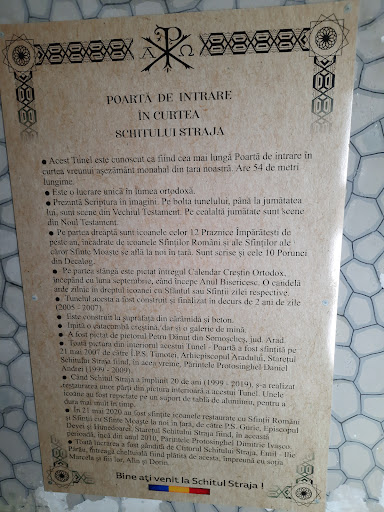 Read moreSchitul Straja este foarte aproape de partia de sky Straja. Un loc de vizitat... A împlinit 20 de ani în 23 octombrie 2019 de la sfințire . A fost construit în 1999 în 3 luni, 3 săptămâni și 3 zile.Tunelul în care sunt pictați 365 de Sfinți, are 54 m lungime și este cel mai lung tunel monarhal din România. În fiecare zi, se schimba candela în dreptul Sfântului sărbătorit. Se aseamănă și cu un tunel minier... o influența prin apropierea de locuitorii orasului Lupeni, oraș...