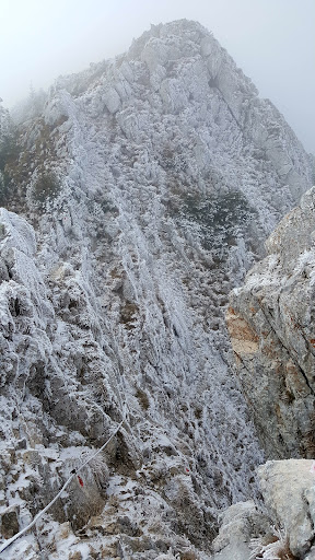 I will definitely say this hike is not for the faint of heart. There was a considerable amount of snow, very poor visibility at times, and strong gusting winds at the ridge. For anyone with a severe fear of heights, I would think twice. There was one portion where you have to scale a walk with only a metal wire, and I considered on numerous occasions just turning around. We were the only hikers out that day, likely due to the weather, but what you are rewarded with is a gorgeous forest, views when the clouds clear, and a national park all to yourself.