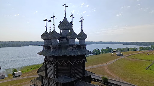 Read moreCathedral on Kizhi Island, karelia Russia. Quando da lontano la si vede : come dire...." ti giunge un respiro di sollievo" non può non comprendere una visita all'isola di Kizhi (in Russo Кижский Погост, o in Kareliano Kizi), e al suo capolavoro per eccellenza, la Cattedrale della Trasfigurazione. Al di là del fatto che una cattedrale di legno sia già di per sé molto bella, questa è spettacolare, ha questo complesso sistema di cupole che sembra che sboccino una dall'altra. Costruita con la tecnica del legno a incastro, senza usare neanche un singolo chiodo in tutta la struttura, ha dell'incredibile. Questa cattedrale è così maestosa e suggestiva che quando durante la seconda guerra mondiale il pilota tedesco Laus Dei Saxell ebbe l'ordine di bombardarla non ce la fece, disse a sé stesso che una cosa così bella andava preservata...