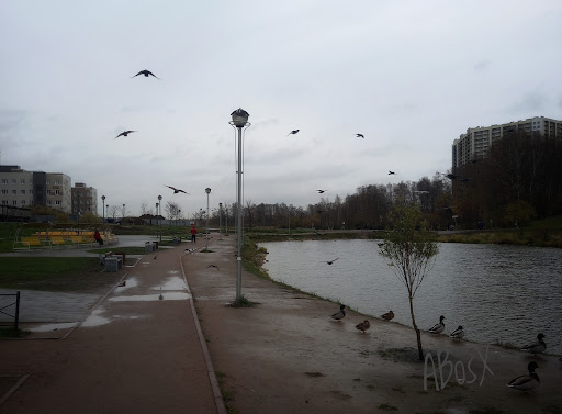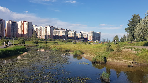 Место неплохое, но явно недодуманное. Здесь нужен постоянно действующий фудкорт с разными кухнями, какое-то количество свободной инициативы людей умеющих и любящих работать с детьми, которых здесь бывает более чем достаточно, аттракционы, свободные художники, продажа книг или вольная библиотека на доверии, все что угодно, и место, из местечка на окраине может быть превращено в жемчужину. Не хуже чем подход к дворцовой площади, с ряжеными, с фокусниками, раскрашенными в бронзу и серебро чудесных дуралеев, с живыми скульптурами и прочие прелести самовыражения людей творческих. Красивое место, но явно формальное и оттого пустое, нет, людей здесь хватает, местные жители завсегдатаи по вечерам и в выходные, пустое в смысле недоделано. Нет той самой искры свободы и некоего куража, когда все легко и непринужденно. Наверное это самая больная тема у нас в стране. Отсутствие возможности для куража, в самом лучшем и чистом значении этого слова. Примерно как есть в здание пять дверей, но открыта вечно только одна из них, знакомо ведь такое? Да, на каждом шагу закрытые двери и узкий как горлышко бутылки проход. Издевательство. Так что парк чудесный, ему бы все это вышеперечисленное добавить и он бы засверкал. Хотя, я всего лишь мечтатель. Фото не делал. Снимать нечего по озвученным выше обстоятельствам, куража тут нет, господа, куража бы сюда, чтобы отдых был вольный, чистый и красивый, а не просто пройти по дорожке держа ребенка за руку, покормить и так закормленных уток и посмотреть на купол церкви, это не отдых, отдых, когда вольно выбирать и есть из чего, по собственному настроению и желанию. Так как-то. PS Дописываю отзыв осенью. Мягко говоря, ощущение чистого ужаса. Летом побывал в южном Кудрово, откуда хотелось убежать сломя голову от этих цветных бетонных многоэтажных коробок-катакомб, а теперь то же самое ощущение от этого, простите за плохой французский "парка". Дикий ужас. Конечно, тут и осенняя хандра, но и объективная реальность. Такая куча денег ухлопана без души, хотя, какая ещё душа, о чем я тут... Нет мест под мангалы, не работает здание с надписью "Кафе", коробки Кудрово по горизонту вокруг, обезличенный, обезображенный безлюдьем кусок земли. Дикое ощущение какой-то мертвечины, даже голуби и утки не добавляют...