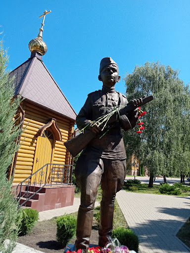 Памятник Сыну полка находится на территории Храма. Открытие этого памятника в канун Дня Освобождения Белгорода, действительно, значимое событие 2020 года для нашего города. Памятник расположен, на мой взгляд, не совсем в удачном месте: на выходе у ворот и почти не виден за высокими кипарисами из-за своего небольшого размера. Мне кажется, его можно было бы поставить рядом с большим собором, тем более там и места больше, и он был бы виднее. Жаль, что такой замечательный памятник практически спрятан от глаз людей. Всем обязательно рекомендую...