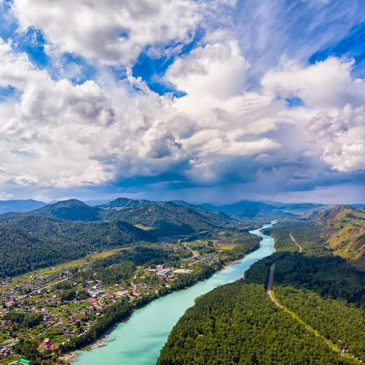 📸 بعدسة Parilov Storm clouds hang over part of the Katun River Valley in the Republic of Altai Mountains in Siberia, Russia Altai is autonomous and is located in the West Siberian region on the borders between four countries: Russia, Kazakhstan, China and Mongolia, and its capital is the city of Gorno-Altaysk. Its vast, pristine lands are a true treasure for lovers of the outdoors and those keen to appreciate the ethereal beauty of panoramic landscapes, as well as preventing noise in most regions of the republic. Altai is also a place of worship for local Buddhist monks and shamans, if you are female, you may have difficulty entering some of the area's shrines.