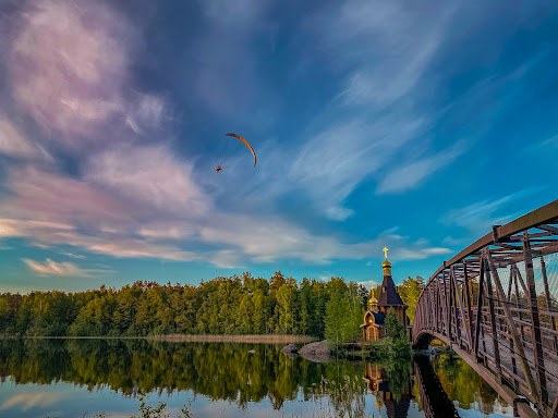 Read moreХотел поставить тройку, но рука не поднялась, больно там места красивые. Высокая оценка исключительно из за красоты этих мест. Если бы там не было храма, поверьте, там было бы только лучше. Что не нравится?!! Какие то люди взяли и отрыли экскаваторами даже не просеку, а просто каньон в заповедном лесу, чтобы протащить какую-то убогую конструкцию, которая служит теперь мостом на остров. Воспользоваться им вы сможете только в субботу или воскресенье с утра и до 17 00. В остальное время туда не попасть, хорошо хоть не колючей проволокой огородили. На трассе стоит указатель на храм, есть парковка. Удобный сход в воду для любителей САП и...