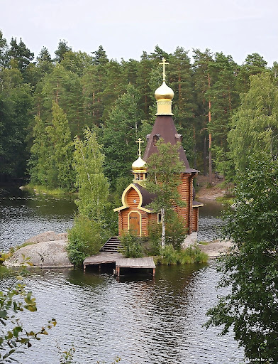На крохотном каменистом островке посреди реки Вуоксы высится храм апостола Андрея Первозванного. Он был построен в 2000 году и сразу же стал одной из жемчужин Карельского перешейка и Ленинградской области. В интернете можно увидеть немало фантастически красивых фотографий храма: утопающим в снегу зимой, в утреннем тумане летом, в золоте осенней листвы… Вуокса — самая большая река Карельского перешейка. Она очень живописна, и весьма популярна среди любителей туризма. Однажды родилась задумка — на одном из скальных выходов устроить место отдыха для туристов-водников. Однако профессор университета имени Герцена предложил поставить здесь храм. Его поддержал живущий поблизости дачник Андрей Лямкин, который стал одним из спонсоров строительства. 21 сентября 1994 года Митрополит Санкт-Петербургский и Ладожский Иоанн (Снычев) благословил строительство часовни. Она была построена по проекту архитектора Андрея Николаевича Ротинова, вдохновленного образом церкви Вознесения в Коломенском. 23 сентября 2000 года часовня была освящена во имя апостола Андрея Первозванного. Согласно церковному преданию, Андрей Первозванный побывал в этих краях во время своих странствий и крестил в реке местных жителей. Он считается небесным покровителем рыбаков и мореходов, андреевский флаг (косой синий крест на белом фоне) является знаменем военно-морского флота России. Долгое время островок, но котором стоит храм, с берегом связывала нить паромной переправы. Несколько лет назад был построен массивный мост, нарушивший таинственную отрешенность этого места. Вокруг храма соорудили гульбище. Не утихают споры, насколько было оправданным строительство такого тяжеловесного моста, который зрительно очень испортил сказочный образ места. Основной объем храма представляет собой восьмерик, увенчанный высоким шатром с маковкой. К нему примыкают два четверика с бочкой, в которых расположены притвор и алтарь. Над притвором поставлена небольшая колокольня. Храм апостола Андрея Первозванного приписан к приходу Святой Троицы в пос. Мельниково Приозерского района...