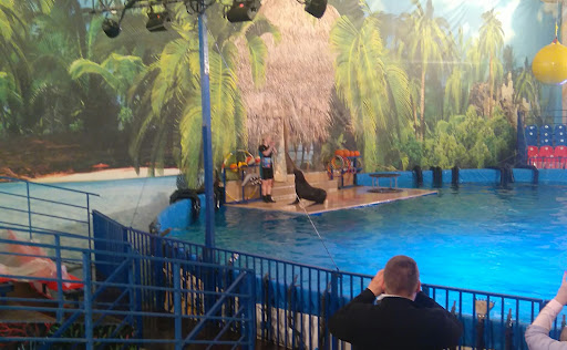 Read moreНе понравилось. Четыре дельфина живут практически в ванне. Бассейн очень маленький и не глубокий. К самим дельфинами претензий нет, трюки выполняют на отлично, представление зрелищное. Зал тоже маленький даже из последнего ряда всё будет прекрасно видно. Наполняемость зала менее половины. В первые ряды билеты брать не стоит, во-первых, видно не очень-то, так как уровень борта бассейна выше уровня глаз, во-вторых, будете облиты водой стопроцентно, в-третьих, придётся сидеть накрывшись полиэтиленовой плёнкой, да ещё не у каждого своя, а одна на весь ряд, да ещё держать её надо так чтобы не только себя защитить, но и пустые кресла! По какой-то причине нельзя на каждое кресло по куску плёнки положить... В конце представления "дискотека" и лотерея. Во время дискотеки, якобы, дельфины выбирают ребёнка, который танцует лучше всех. Ему дарят крутой приз в виде катания дельфинами на лодке. На самом деле побеждает ребёнок из первого ряда подходящий по возрасту выбранный ведущим, остальным стараться бессмысленно. Выбирайте сразу или сидеть сорок минут завернутыми в полиэтилен ничего не видя, что многим детям будет очень тяжело вынести, или заведомо остаться без приза. В лотерею никакого катания не разыгрывается уже, только фото. Не справедливо абсолютно. Второй раз идти зная, что ничего особенного не светит желания нет. Дельфины очень старались, люди всё...