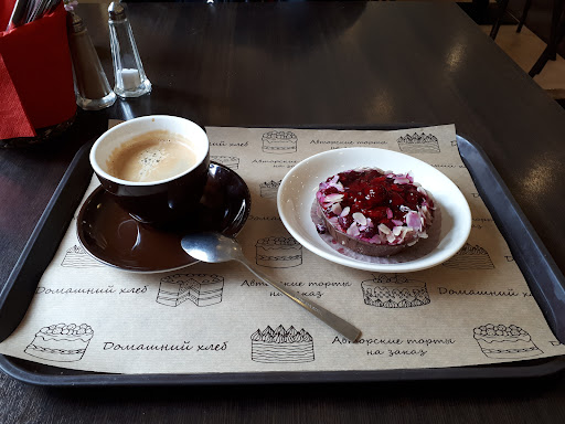 Хороший ассортимент всегда.Супы,салаты,горячие блюда,торты,пирожные,чай,кофе,пироги,холодные напитки,хлеб и многое другое.Весной покупала очень вкусные куличи с цветочками из мягкого марципана и с миндалём.Аж несколько видов с разными добавками,украшениями и из разного теста.Большой выбор макаронов.Пробовала в сравнении с ними разные от других производителей,но эти самыми вкусными показались и совсем не приторными,как многие другие.И очень понравились пирожные типа суфле с фруктовым пюре внутри на тоненьком слое теста.Пробовала с манго,малиной и клубникой.~Очень аккуратный персонал.Антисептики для посетителей на стойке были всегда,даже и без эпид.обстановки.Но очень жаль,что именно в период эпидемии закрыли туалет и умывальник.Хоть и на вынос только работают,но даже кофе и пирожок с собой гораздо безопасней взять вымытыми руками,чем в перчатках с размазанными по ним антисептикам. Возможно закрыть туалет с умывальником просто выгодно сейчас экономически. Потерпим). Но очень ждём,когда можно будет спокойно позавтракать за столиком со свежими цветочками,вымыв руки с мылом,например омлетом или яйцами"Пашот" с салатом с рыбкой и...