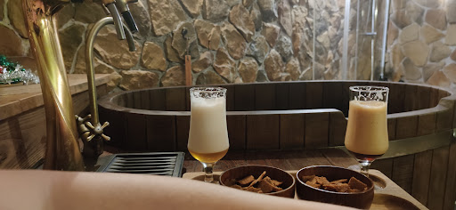 Весьма неплохая и довольно близкая к оригиналу копия аналогичных чешских заведений. Для тех, кто не был, поясню процедуру. Милая девушка - сотрудник СПА-центра вкратце рассказывает про оздоравливающий эффект пивных ванн, при вас наполняет купели тёплой водой, размешивает приятно пахнущий пивной концентрат из солода, хмеля и других ингредиентов, и оставляет вас одних. В вашем распоряжении два крана - один с пивом, другой с медовым квасом (в этом отличие от чешского оригинала - там в одном кране тёмное, в другом - светлое пиво). Пиво и квас можно употреблять в неограниченных количествах, сколько влезет. Через некоторое время (достаточное, чтобы успеть раздеться и погрузиться в купель) на 20 минут включается гидромассаж. Если оплатить двухчасовой сеанс, бурлилка через час включится снова, но почему-то уже на 15 минут. Сидеть в бурлящей джакузи, наполненной запахами хмеля и пить холодное пиво очень приятно и вроде как даже полезно для здоровья :)) Если забыли купальники - не беда, одноразовые купальники, полотенца, халаты и тапочки можно недорого арендовать тут же. Впрочем, купальники особо и не нужны, поскольку к вам никто не зайдёт и не побеспокоит. Есть ванная с душем, если будет желание смыть с себя запах хмеля. Можно за доплату пригласить массажиста. Есть туалет, разумеется, правда он вне комнаты, но на то и халаты. В целом всё понравилось. Лично мне пиво не очень зашло, супруга, наоборот, сочла приемлемым, так что это вопрос вкусовых пристрастий. Квас сладковат, но вкусный. В отличие от чешских ванн, тут нет кровати с сеном и хмелем, где было приятно поваляться и создавало приятный аромат в помещении. Но, увы, это запрещено отечественным санэпиднадзором. В общем, если тема интересна - стоит...